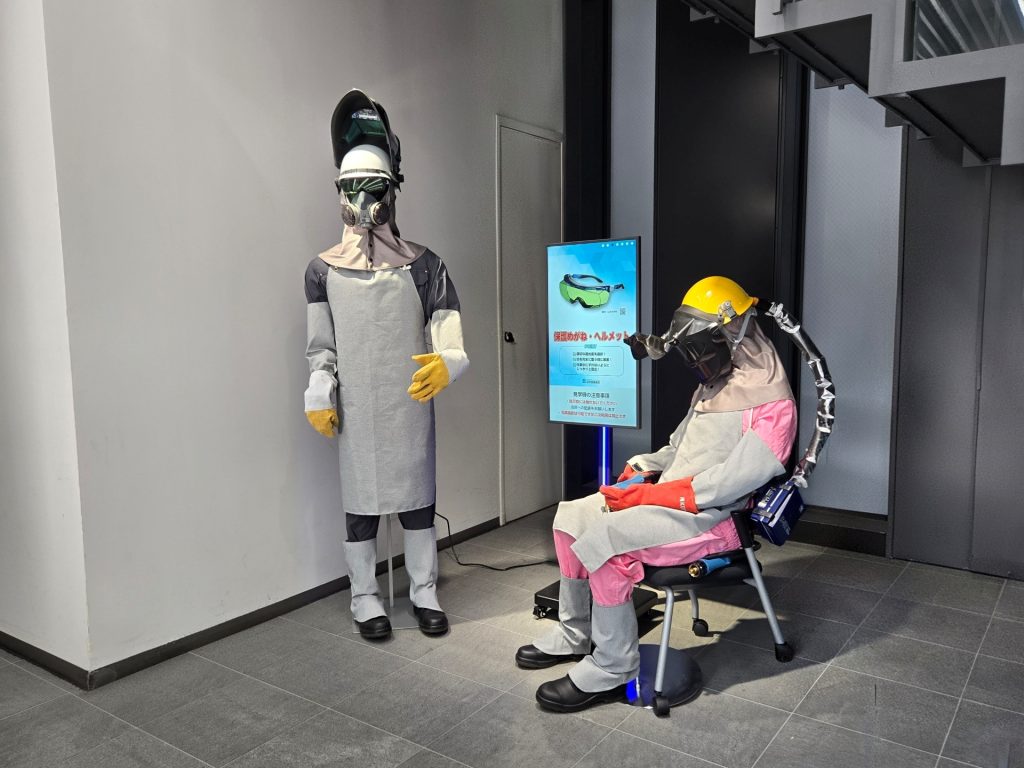 溶接会館(東京都千代田区)1階ロビーにて展示中の「溶接保護具装着マネキン」について、展示内容の更新(着せ替え)を行いました。