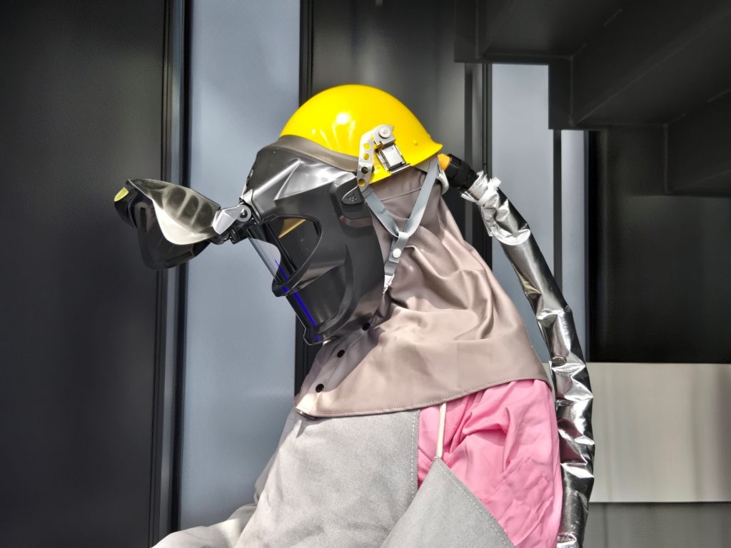 今回は立位と溶接作業姿勢の2体のマネキンに、以下の保護具を装着しています。